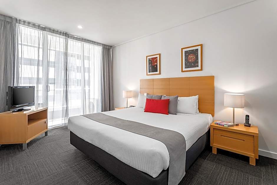 Located on the higher floors with great views, these larger apartments offer more space and superior furnishings. Features 2 bathrooms, full kitchen and laundry facilities, and the bedrooms are separate from the living/dining area.